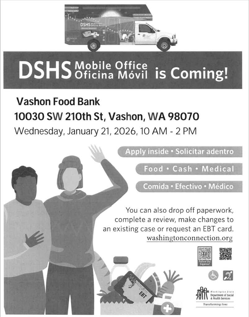 • Wednesday, January 21: DSHS Mobile Office (Food Bank)