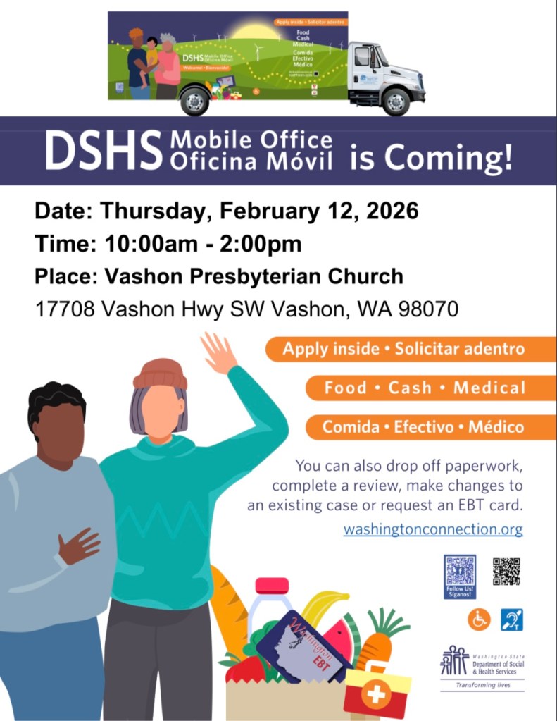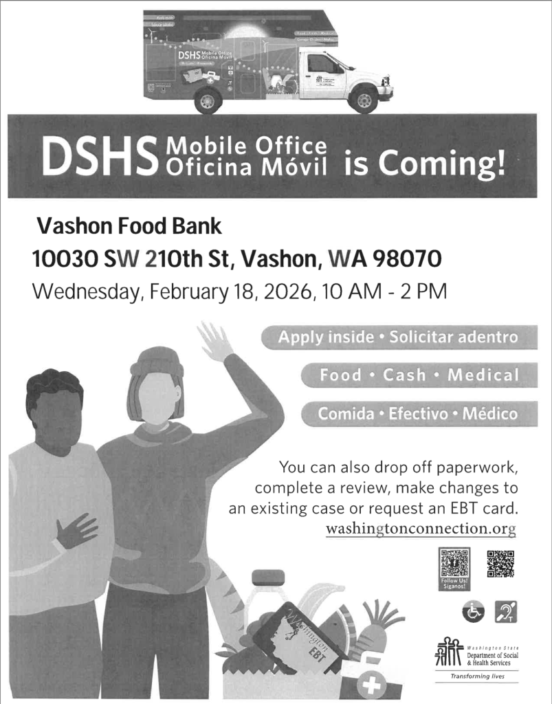 • Wednesday, February 18: DSHS Mobile Office (Food Bank)