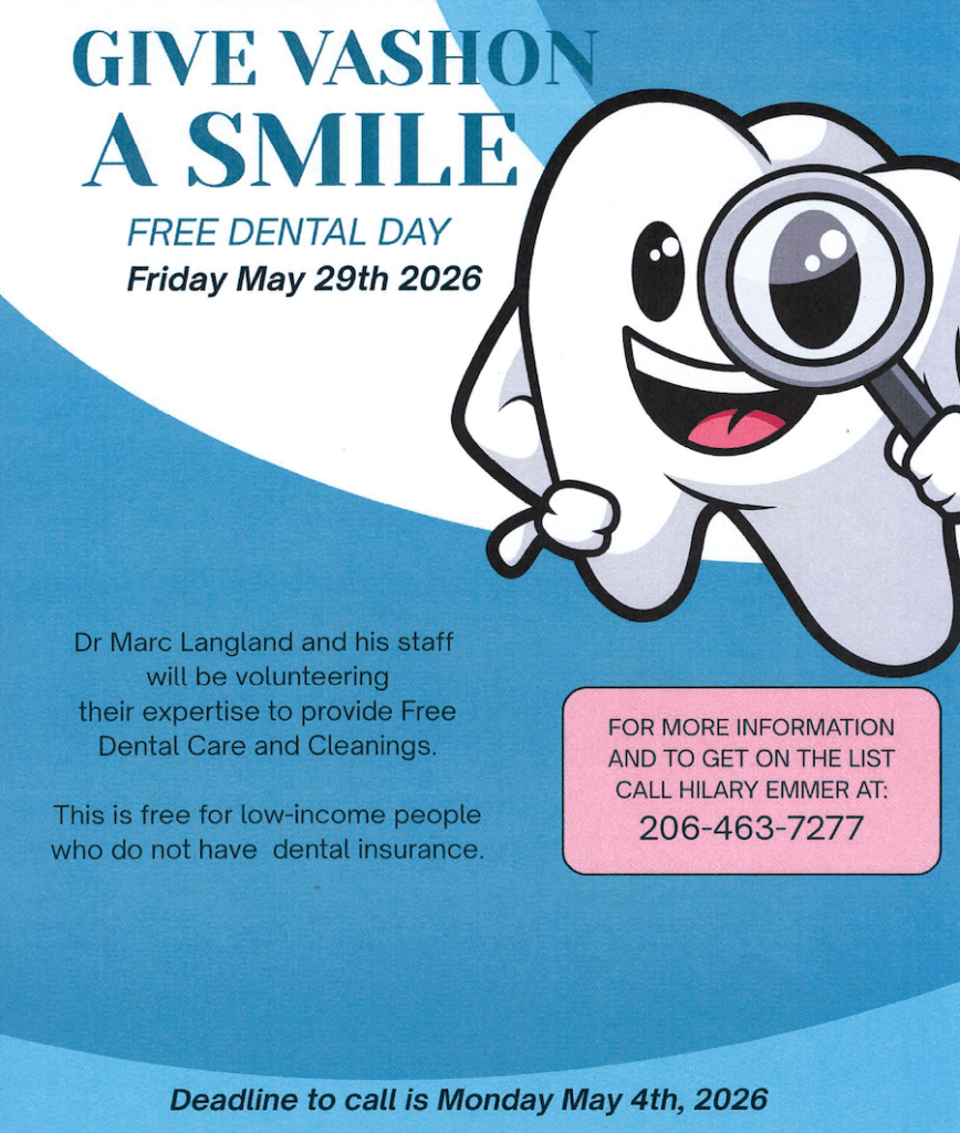 If you would like volunteer to join our meals team, contact Brownie Carver at bc2vashon@centurytel.net