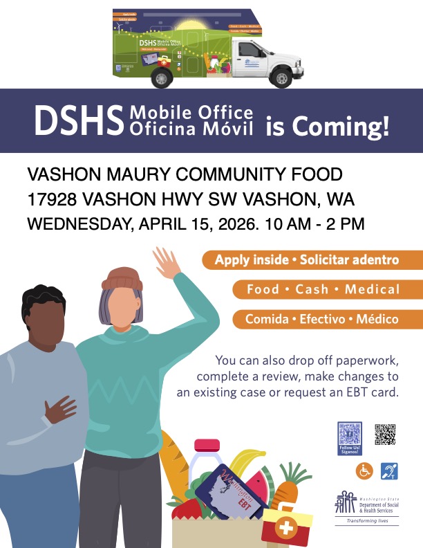 NOTE about DSHS visit: If you haven’t been re-certified, please visit the DSHS van so you can continue with the benefits you already receive!